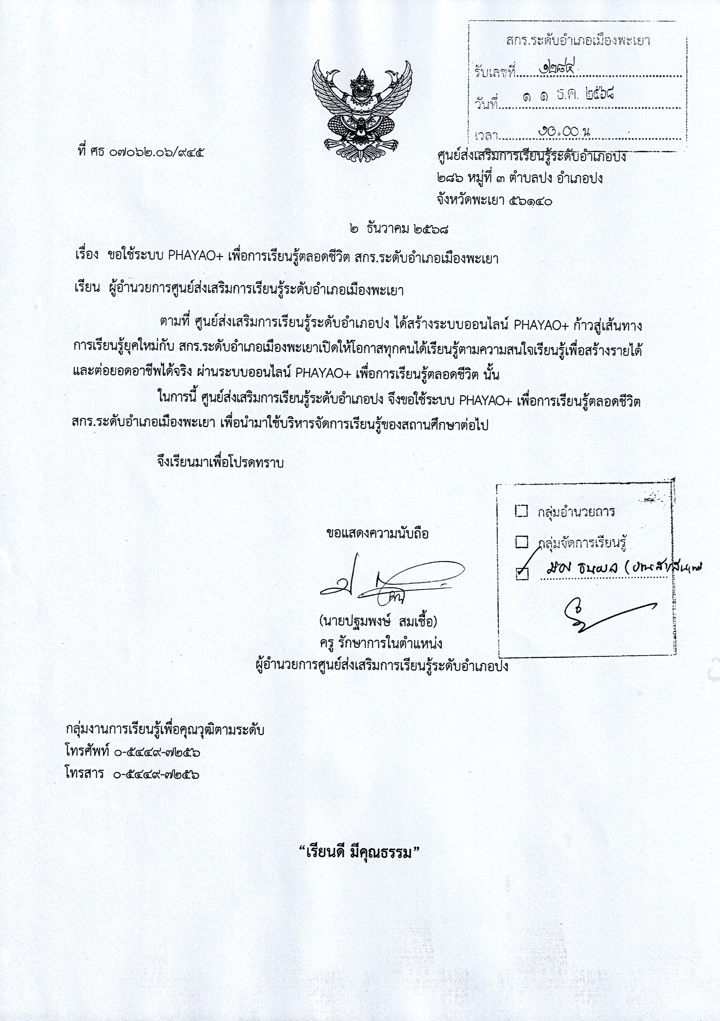 นวัตกรรมระบบแนะแนวและดูแลช่วยเหลือผู้เรียนแบบองค์รวม ที่พัฒนาขึ้นโดยครูและบุคลากรทางการศึกษา สกร.ระดับอำเภอเมืองพะเยา จังหวัดพะเยา เพื่อส่งเสริมให้ผู้เรียนสามารถ ค้นพบตนเอง พัฒนาศักยภาพอย่างเต็มที่ สนับสนุนการเรียนรู้ตลอดชีวิต การเรียนรู้เพื่อคุณวุฒิตามระดับ และการเรียนรู้เพื่อพัฒนาตนเอง ภายใต้บริบทของสังคมยุคใหม่ที่เปลี่ยนแปลงอย่างรวดเร็ว โมเดลนี้มุ่งเน้นการบูรณาการ การแนะแนวและการดูแลช่วยเหลือผู้เรียน การเรียนรู้แบบออนไลน์ และการวัดผลประเมินผล โดยมีครูและบุคลากรทางการศึกษา สกร.ระดับอำเภอเมืองพะเยา เป็นผู้จัด ส่งเสริม สนับสนุนการเรียนรู้ และอยู่เคียงข้างผู้เรียนตลอดเส้นทางการศึกษา